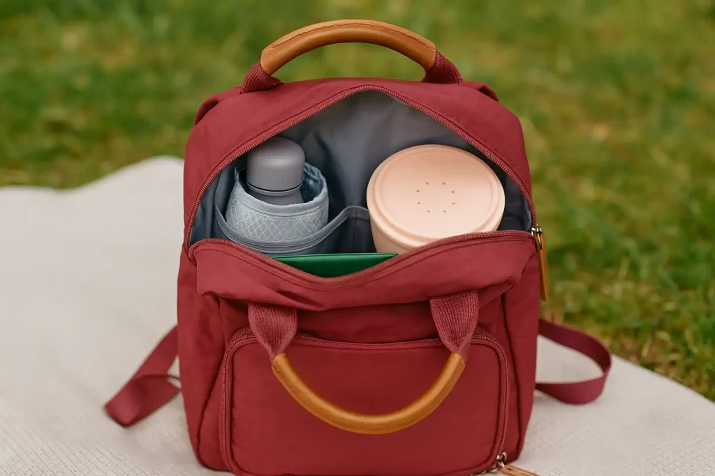 Chaque détail répond à un besoin concret. Un compartiment spécial accueille la boîte à lunch, une pochette isolante garde la gourde bien au frais, et une poche avant offre un espace rapide pour les trésors du jour – une petite voiture, un caillou brillant trouvé sur le chemin, ou un paquet de mouchoirs « au cas où ». Un porte-carte intégré permet même d’y inscrire le nom et l’adresse, pour que ce précieux compagnon retrouve toujours le chemin de la maison.