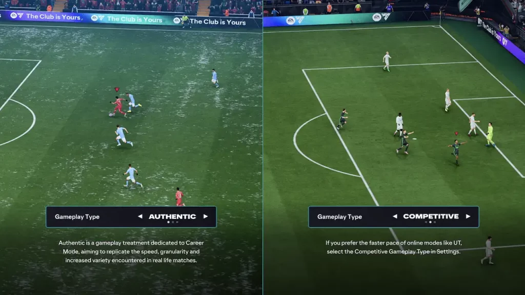 EA Sports a introduit une idée simple mais séduisante : deux façons de jouer, deux philosophies. Le mode Authentic veut séduire les amateurs de réalisme, avec un rythme plus posé, des actions construites et un travail tactique plus exigeant. À l’opposé, le mode Competitive est calibré pour les joueurs en ligne : plus nerveux, plus rapide, plus direct. Ce dédoublement du gameplay crée un contraste saisissant, presque schizophrénique, mais qui a le mérite de s’adapter à deux publics souvent irréconciliables.