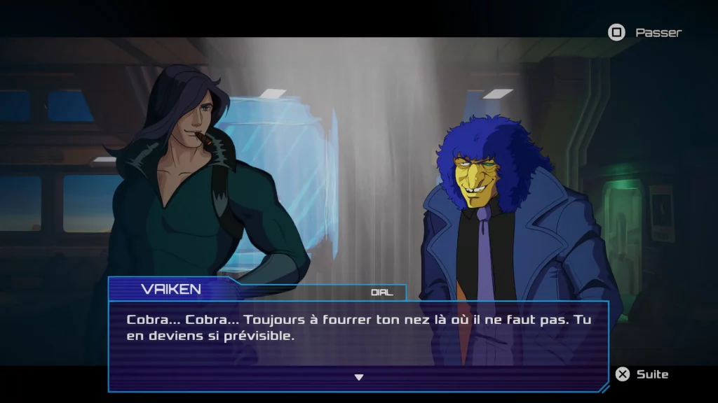Les dialogues, quant à eux, ont été réenregistrés pour l’occasion. Bonne nouvelle : on peut basculer entre la version japonaise et la version française. Les puristes retrouveront donc les intonations des seiyû, tandis que les nostalgiques de la diffusion télévisée française auront droit à une VF actualisée. Certes, certains joueurs regretteront que la voix de Cobra ne parvienne pas toujours à égaler le charisme de l’original, mais l’effort de localisation mérite d’être salué.