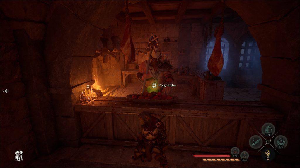 Parler de l’intelligence artificielle dans ce Styx, c’est évoquer un schizophrène. Par moments, elle est d’une bêtise affligeante : vous pouvez égorger un garde à deux mètres de son collègue sans que celui-ci ne sourcille. À d’autres moments, elle devient omnisciente. Vous vous cachez dans un tonneau ou sous une table après avoir été repéré ? L’Inquisition semble soudainement dotée d’un GPS intégré et vous suivra sans fin, même si vous avez mis une distance considérable entre vous. C’est d’autant plus frustrant que Styx est une véritable brindille au corps à corps. Même si vous gérez parfaitement l’esquive, un duel face à deux gardes se termine presque toujours par votre mort en deux coups. La sentence est immédiate, brutale, et vous renvoie à un écran de chargement qui dure… une éternité.